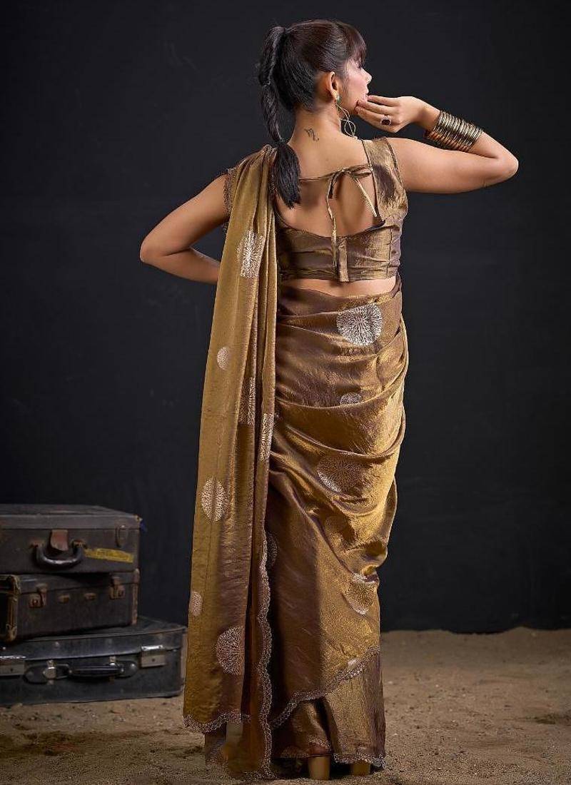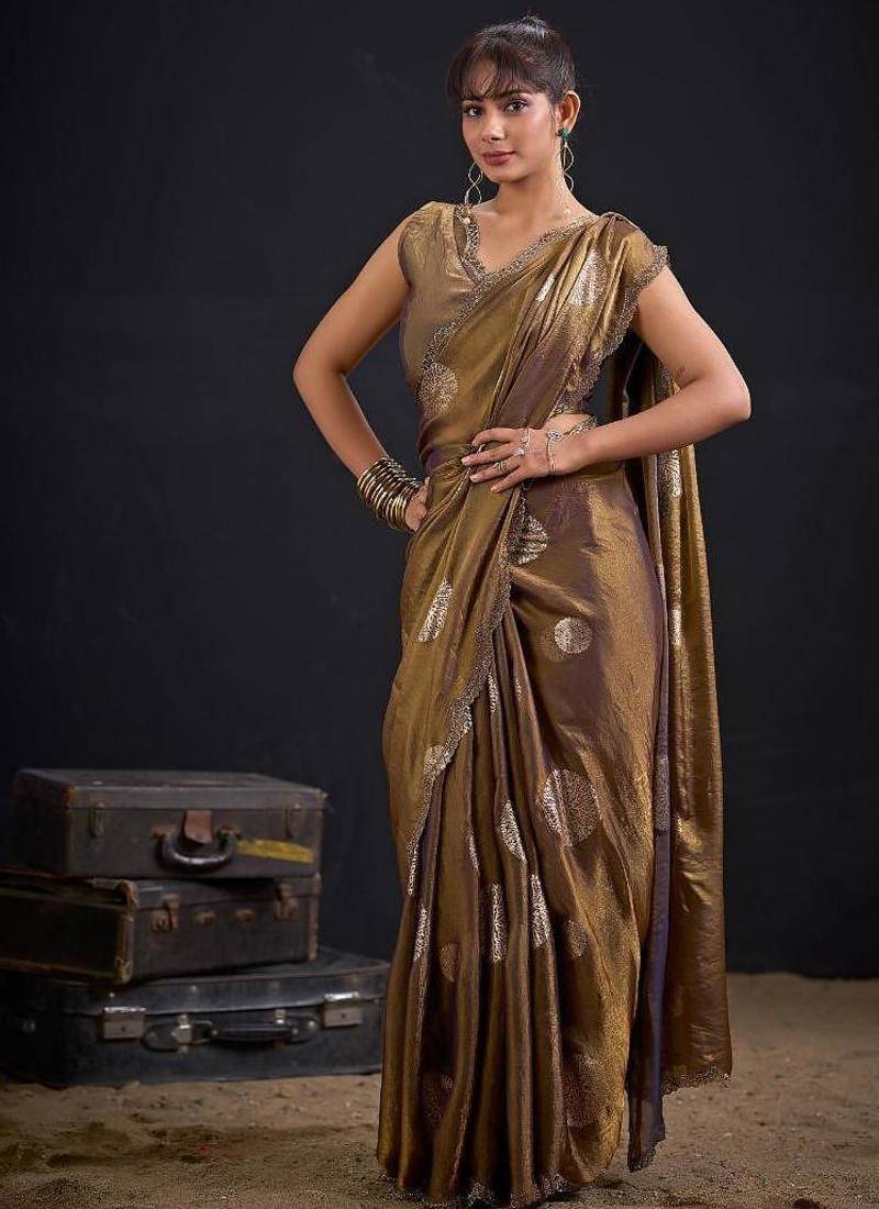 | Product Name | Mouse Color Fendi Silk Two Ton With Foil Handwork Zircon Work Saree | |