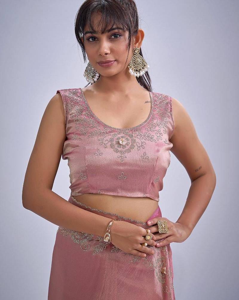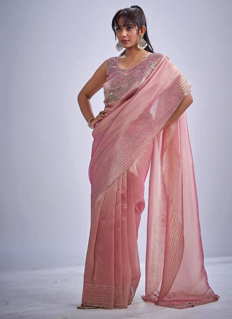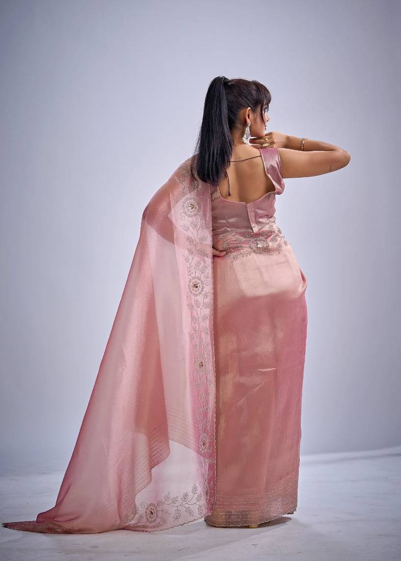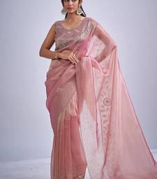 Pink color kanjivaram pure silk zircon cutdana & sequence handwork saree