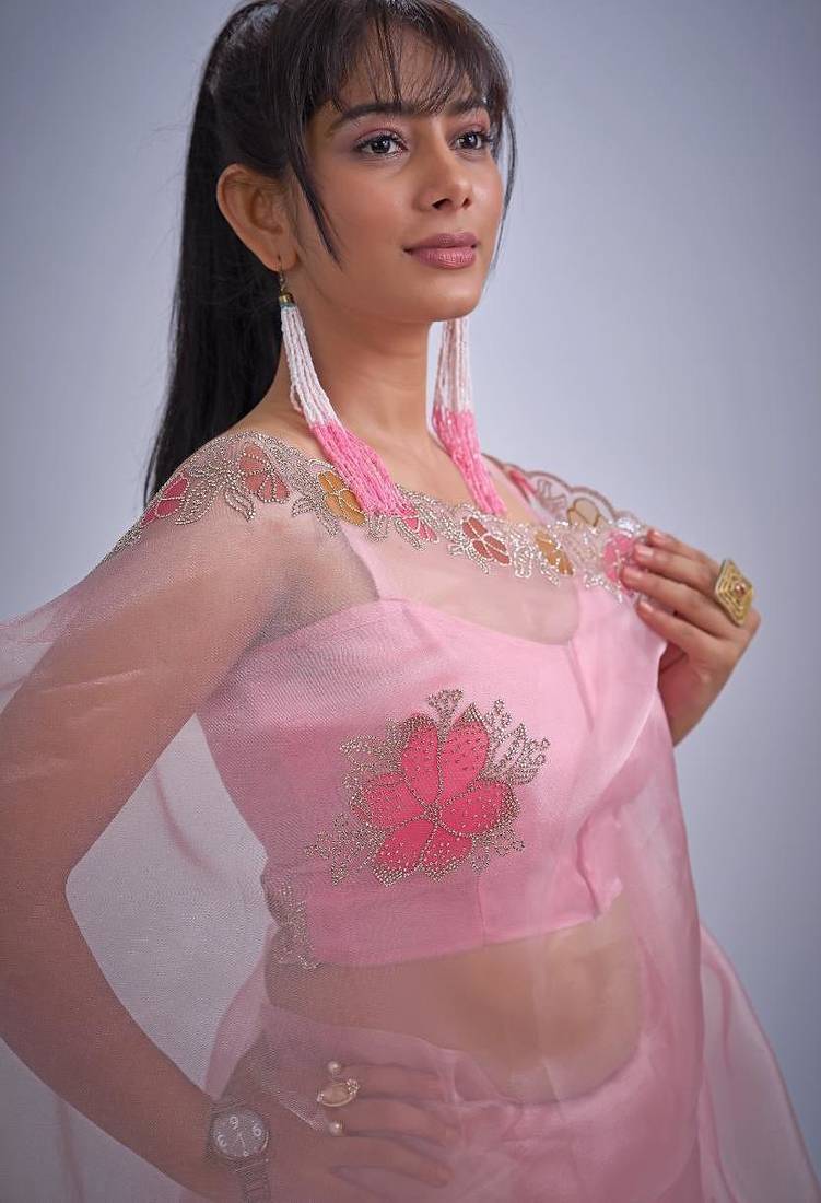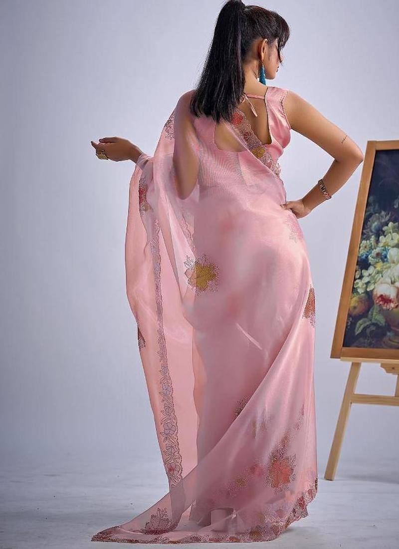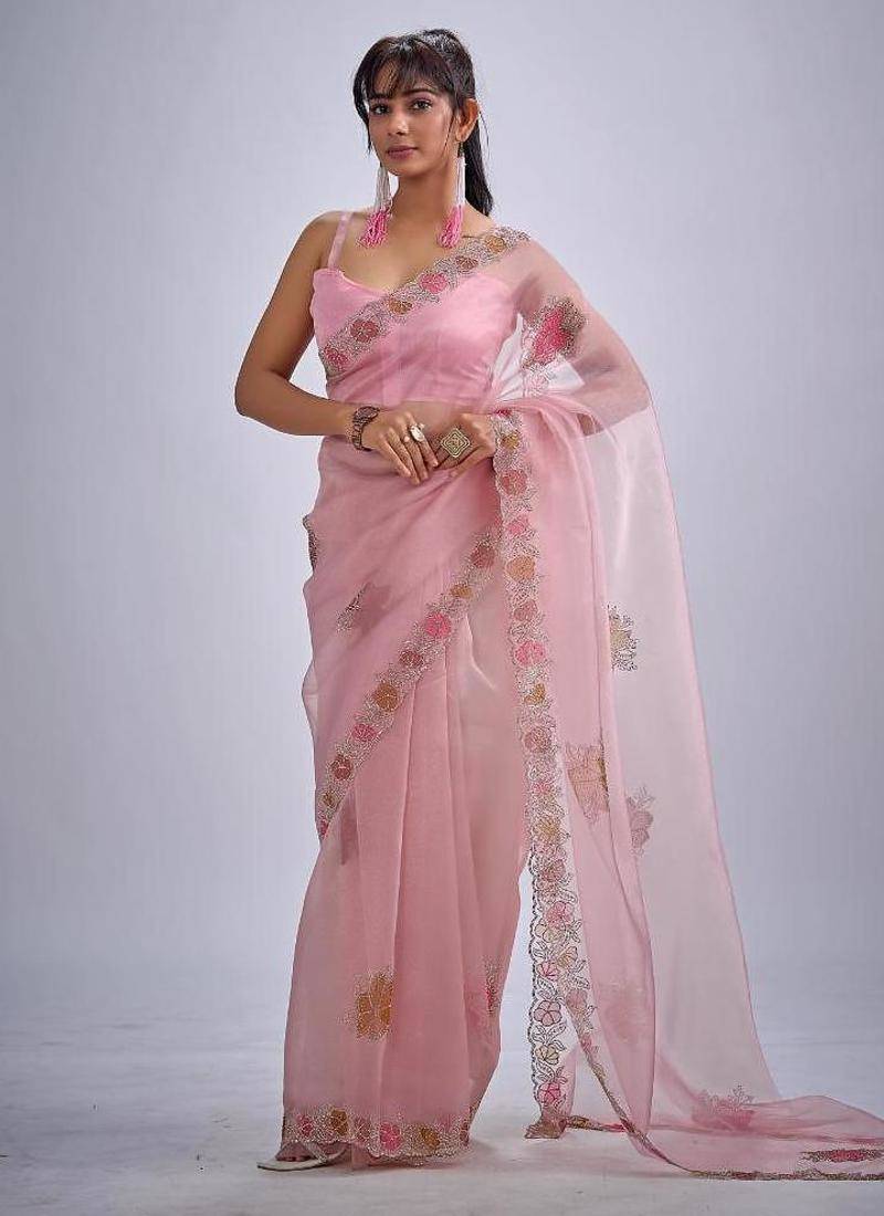 | Product Name | Pink Color Soft Oregenza Tissue Handwork Zircon Border Saree | |