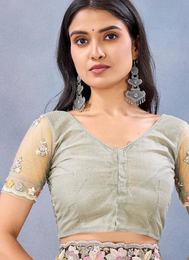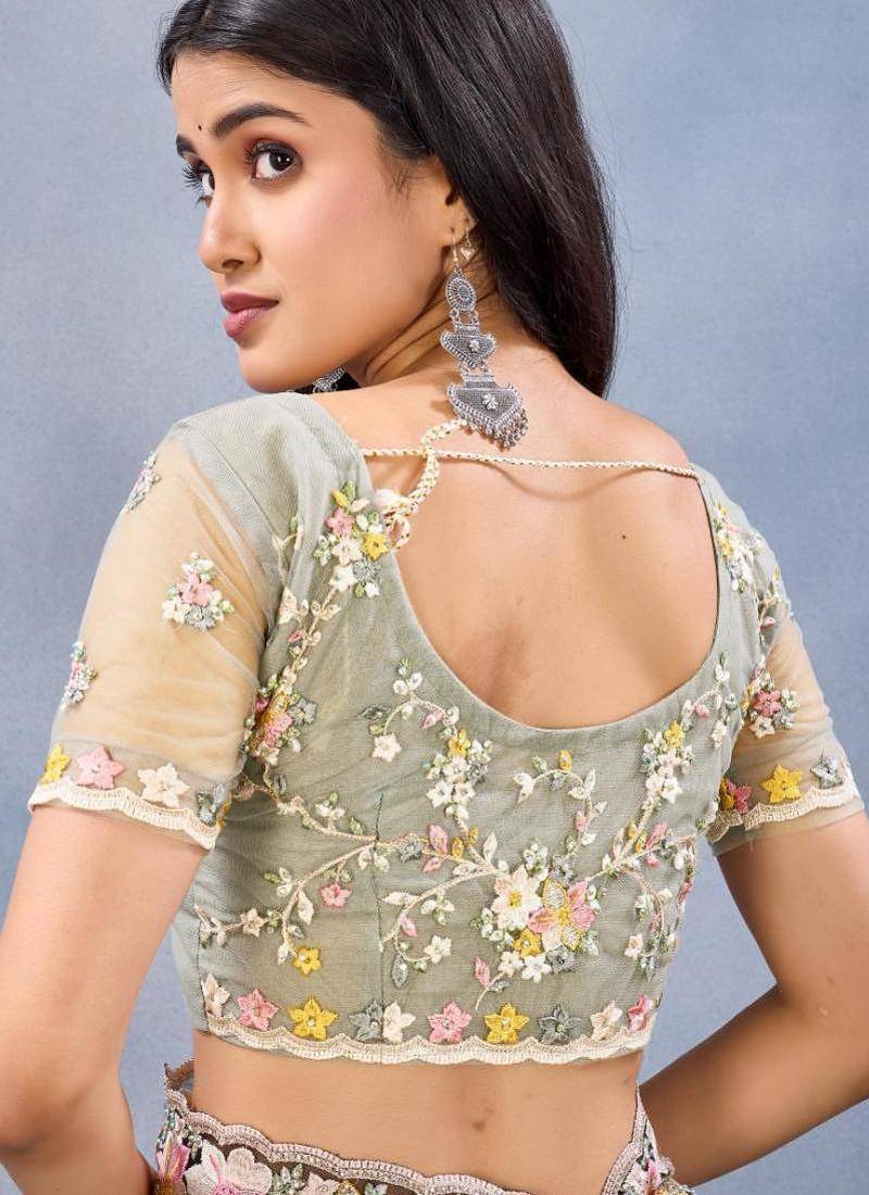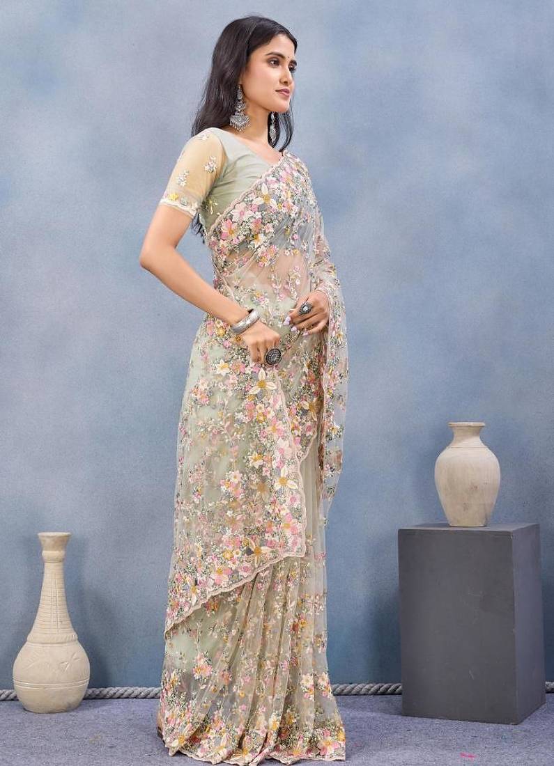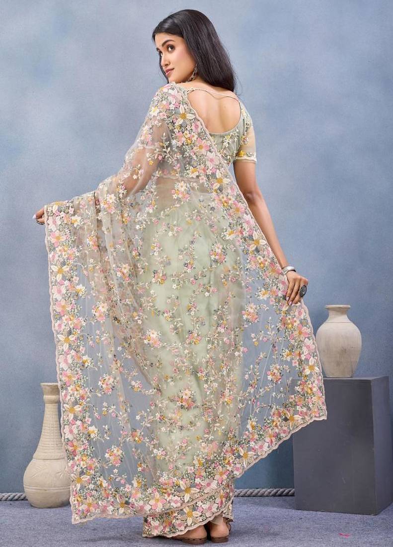 | Product Name | Pista Color Net Resham Embroidered & Handwork Zircon Work Saree | |