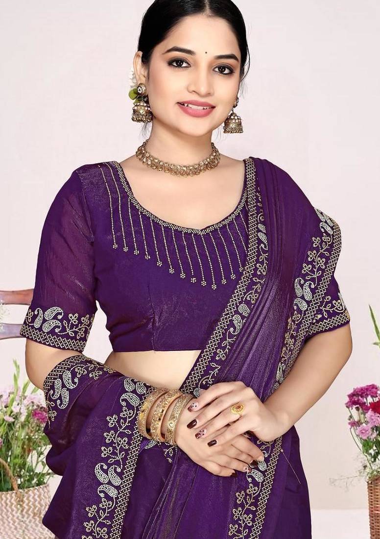 | Product Name | Purple Color Fendi Satin Silk Two Tone Zircon Work Saree | |