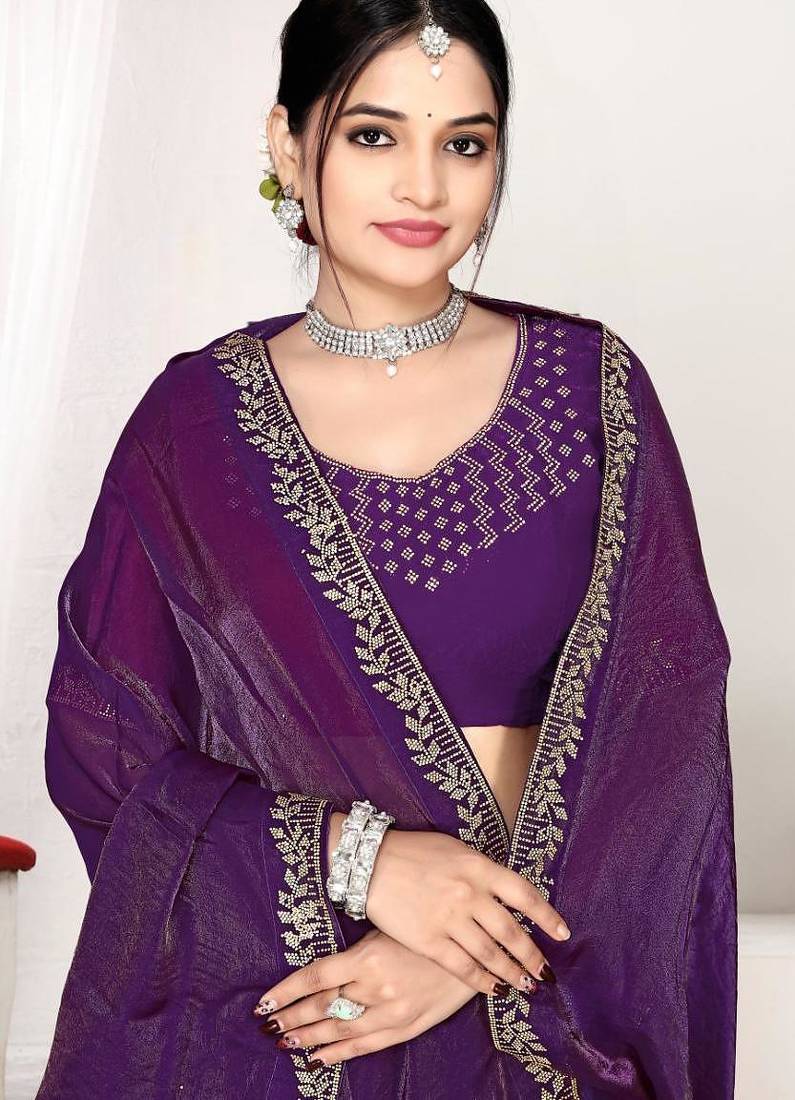| Product Name | Purple Color Fendi Satin Silk Two Tone Zircon Work Saree | |