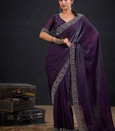 Purple color fendi satin silk two tone zircon work saree