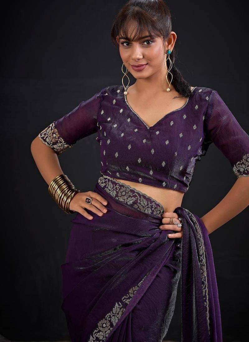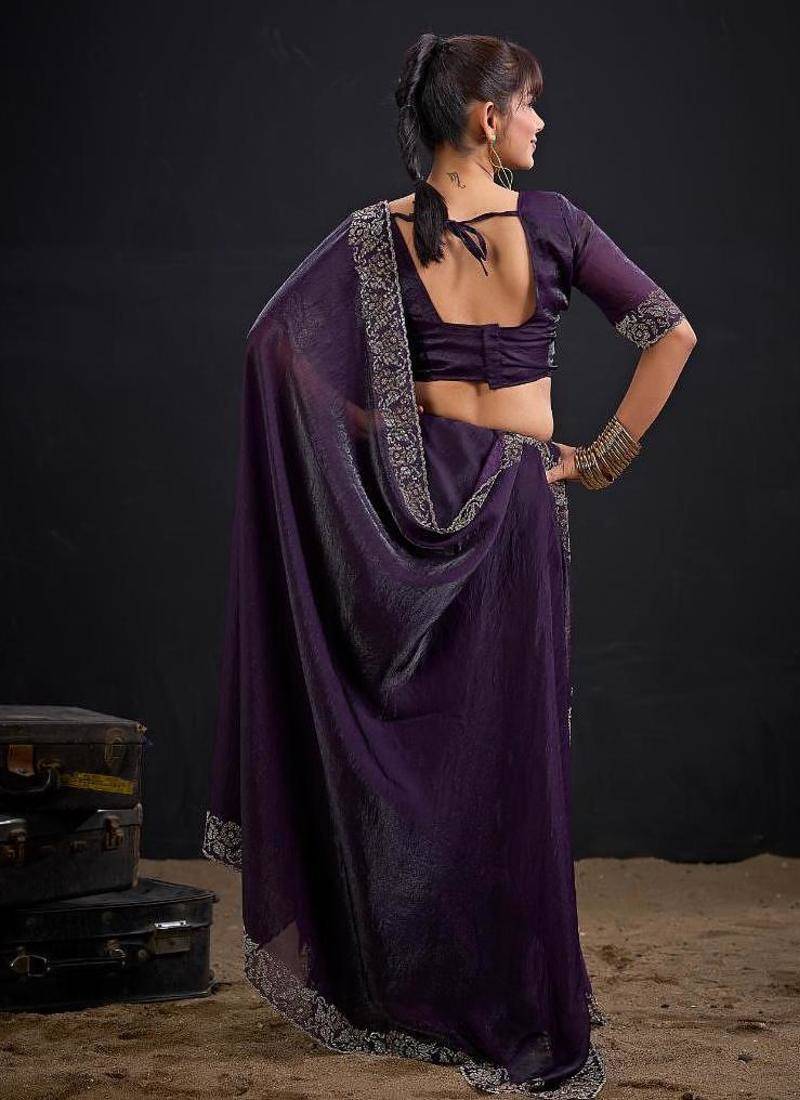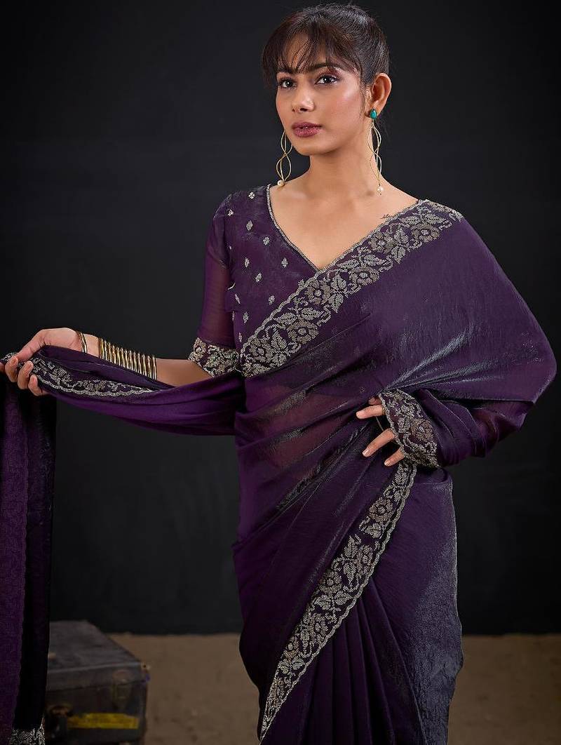 | Product Name | Purple Color Fendi Satin Silk Two Tone Zircon Work Saree | |