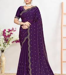 Purple color fendi satin silk two tone zircon work saree
