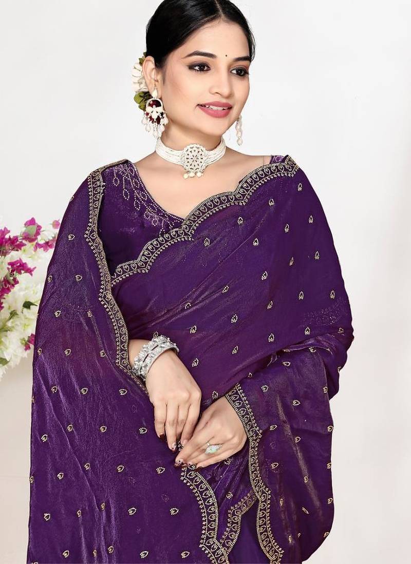 | Product Name | Purple Color Fendi Satin Silk Two Tone Zircon Work Saree | |