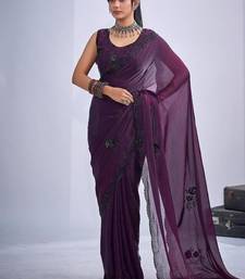 Purple color fendy satin silk two tone zircon cut dana & sequence hand work saree