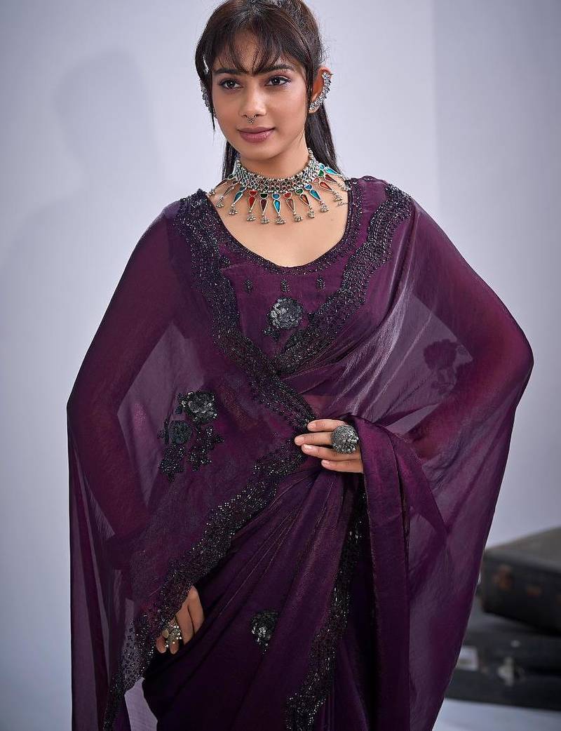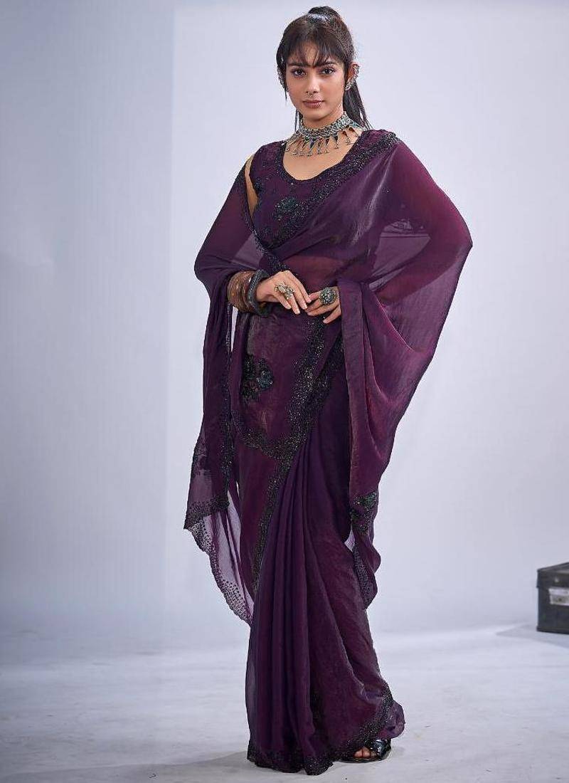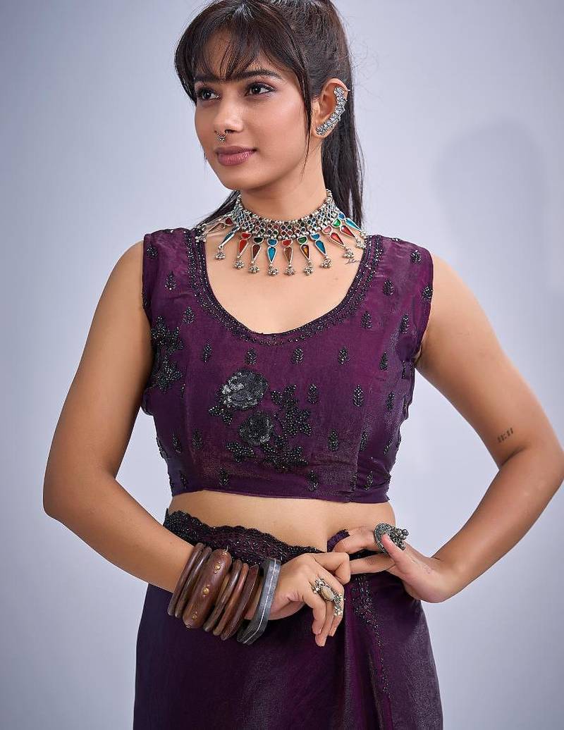 | Product Name | Purple Color Fendy Satin Silk Two Tone Zircon Cut Dana & Sequence Hand Work Saree | |