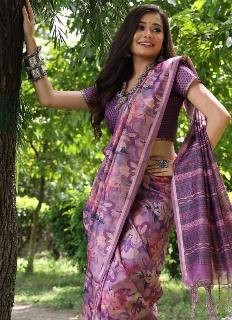 | Product Name | Purple Color Tussar Silk Unique Print Zari Weaving Border Saree | |