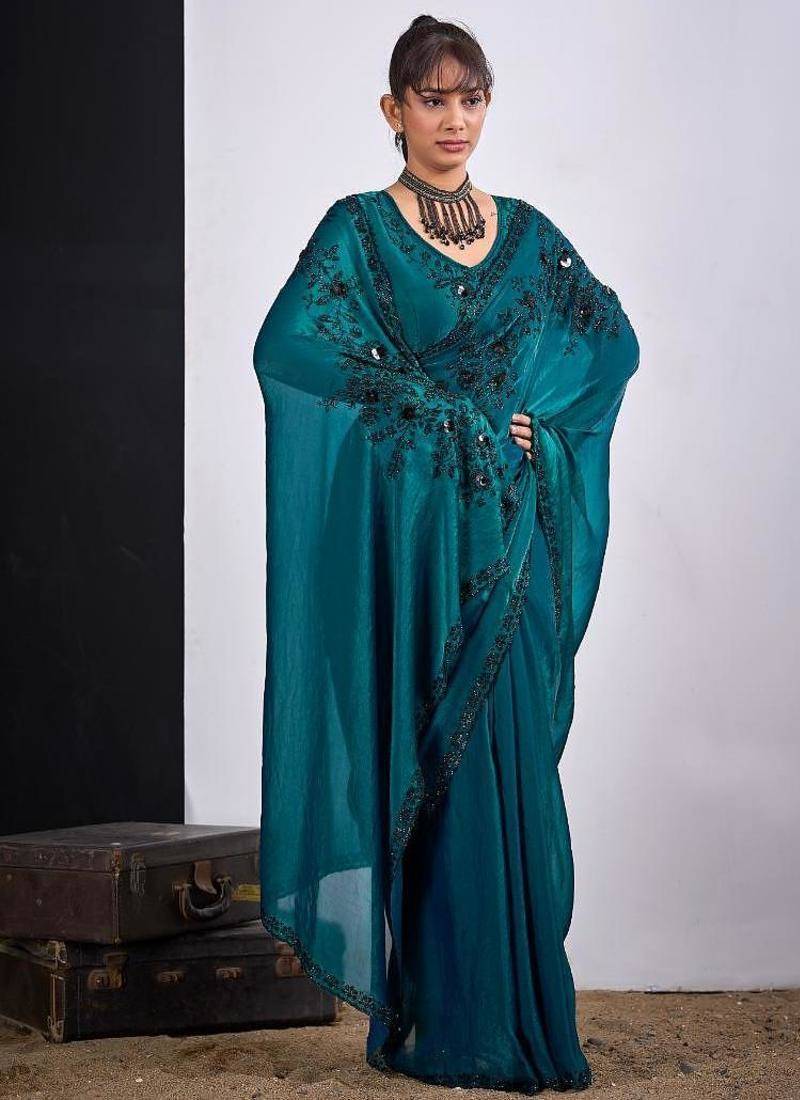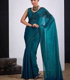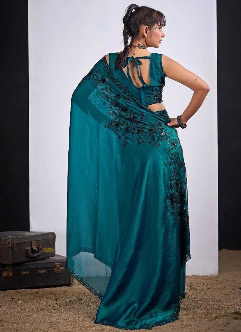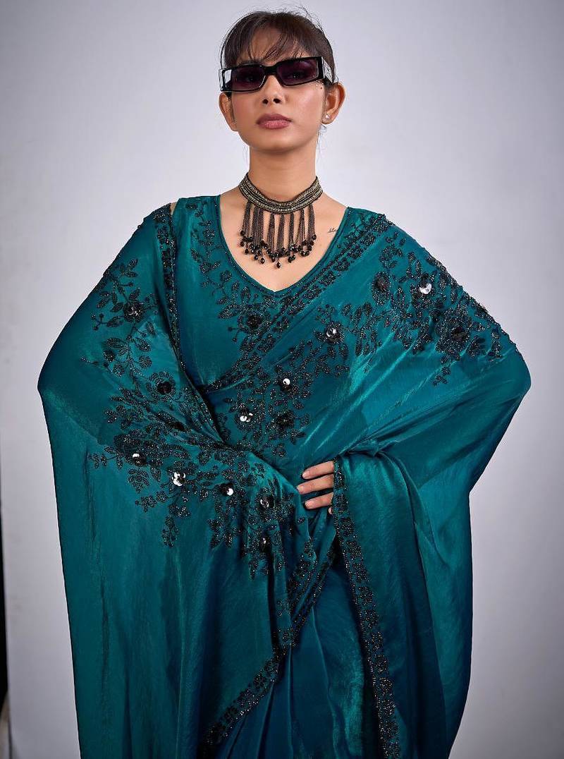 Rama color fendy satin silk two tone zircon cut dana handwork saree