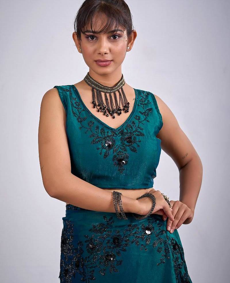 | Product Name | Rama Color Fendy Satin Silk Two Tone Zircon Cut Dana Handwork Saree | |