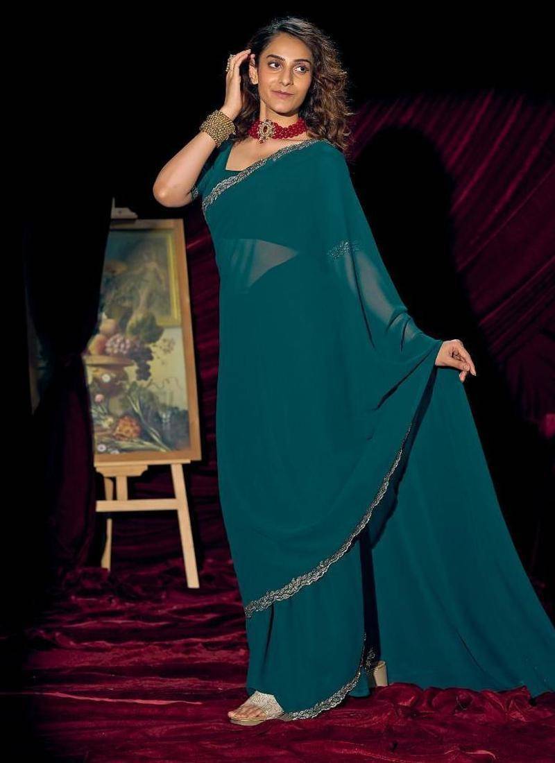 | Product Name | Rama Color Pure Georgette Zircon Handwork Border Saree | |