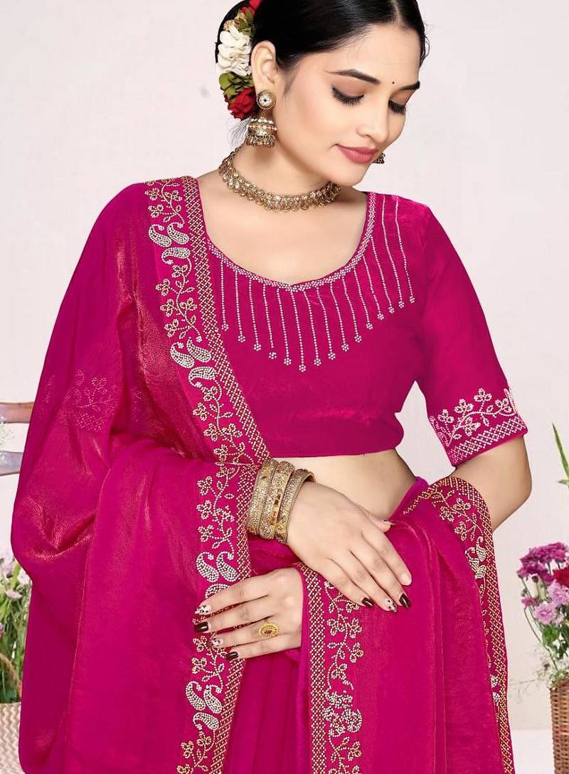 | Product Name | Rani Color Fendi Satin Silk Two Tone Zircon Work Saree | |