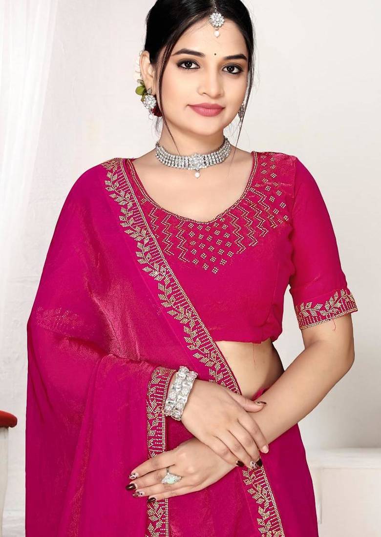 | • | Saree | : | Color- Rani Pink / Fabric- Silk Blend |