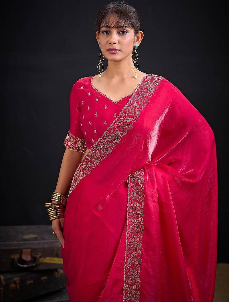 | Product Name | Rani Color Fendi Satin Silk Two Tone Zircon Work Saree | |