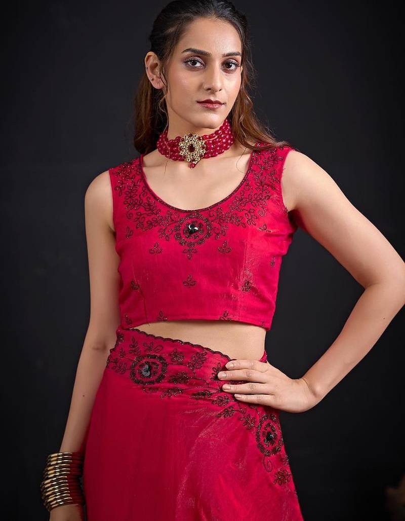 | Product Name | Rani Color Fendy Satin Silk Two Tone Zircon Sequence Handwork Saree | |
