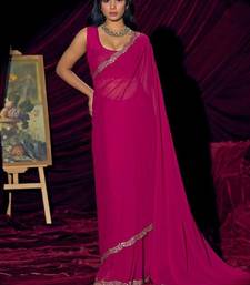 Rani color pure georgette zircon handwork border saree