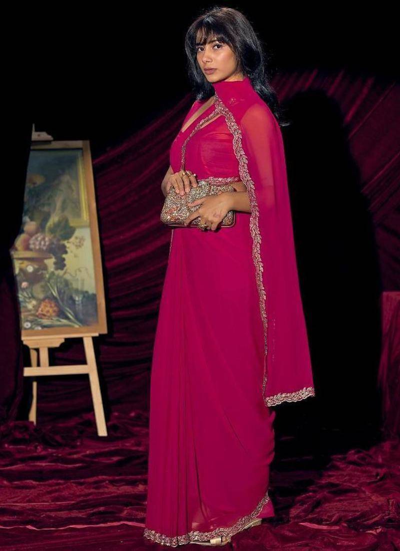 | • | Saree | : | Color- Rani Pink / Fabric- Pure Georgette |
