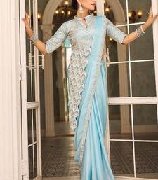 Ready to wear pre drape skyblue color rangoli silk saree with stitch blouse