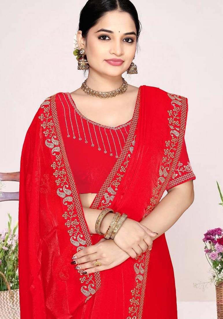 | Product Name | Red Color Fendi Satin Silk Two Tone Zircon Work Saree | |