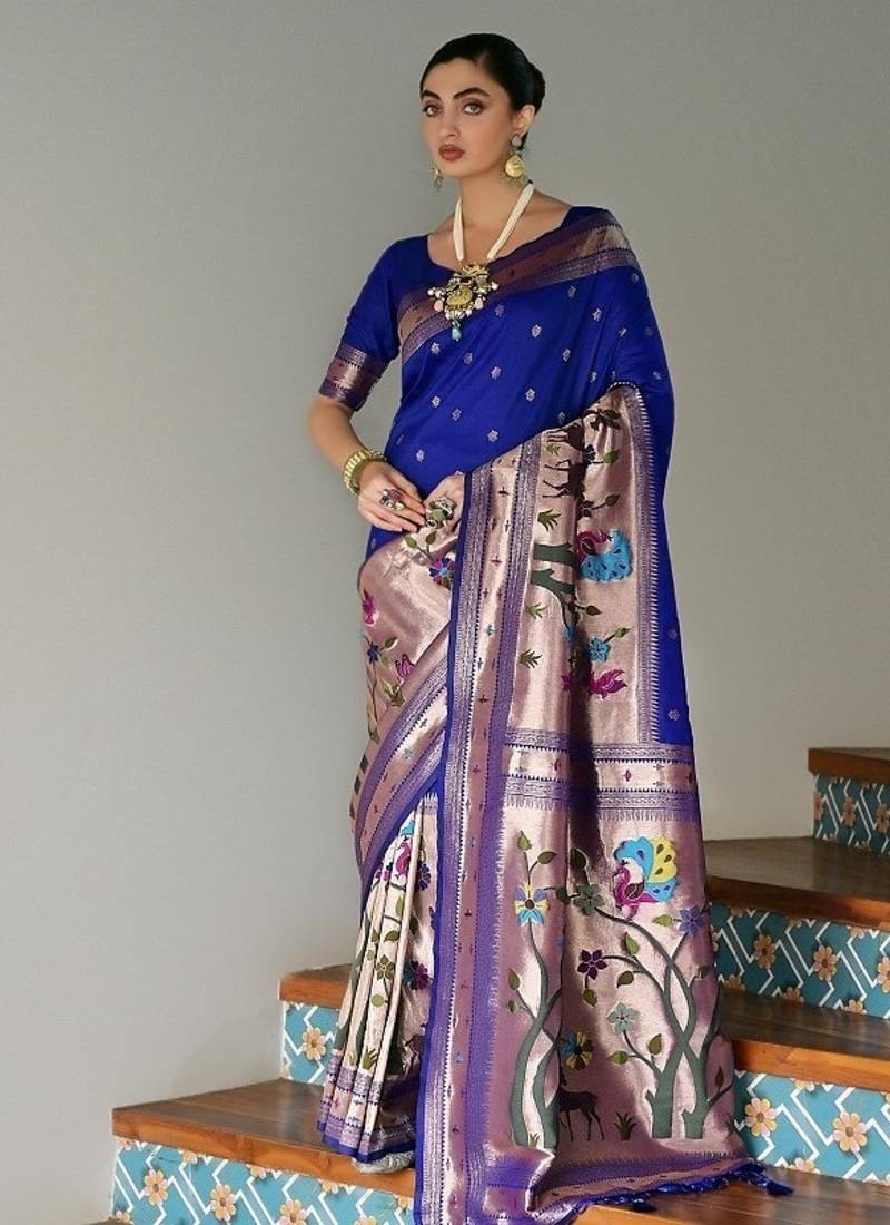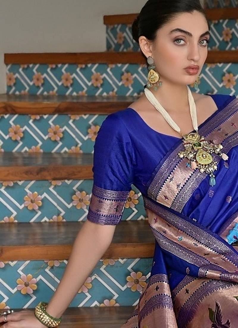 | Product Name | Royal Blue Color Banarasi Silk Paithani Zari Weaving Saree | |