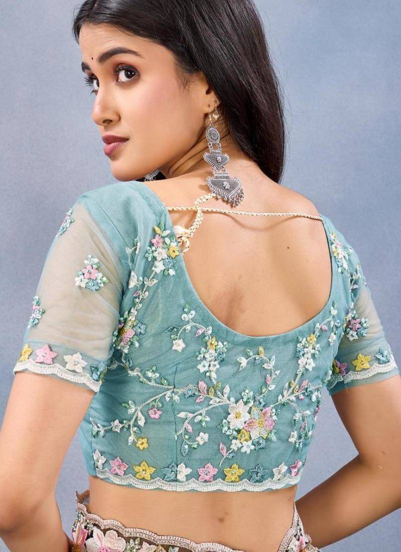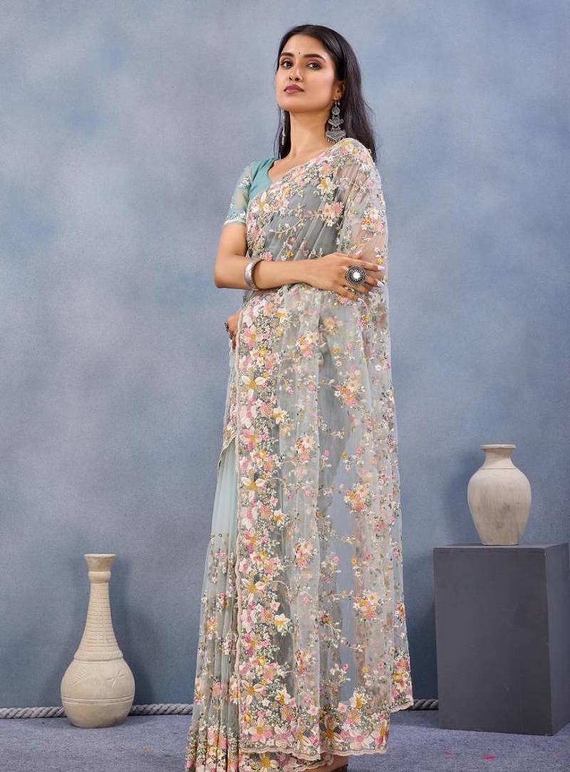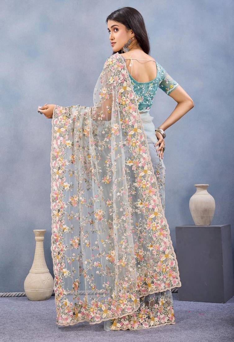 | Product Name | Sea Green Color Net Resham Embroidered & Handwork Zircon Work Saree | |