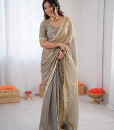 Silver color 1 minute ready to wear fendy silk lace border saree with blouse
