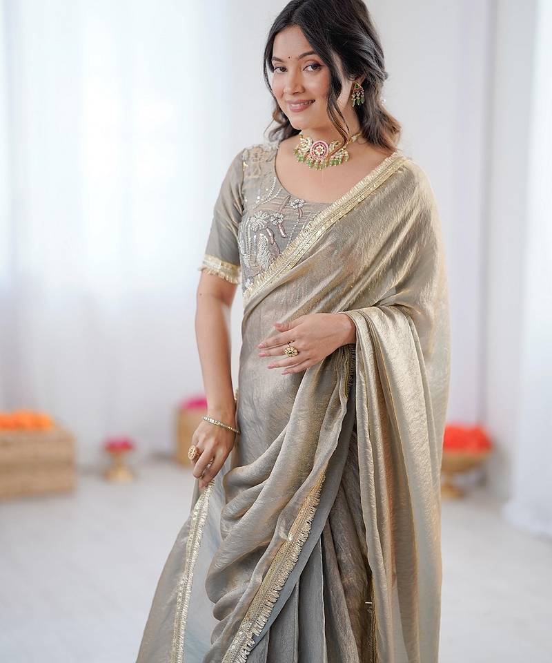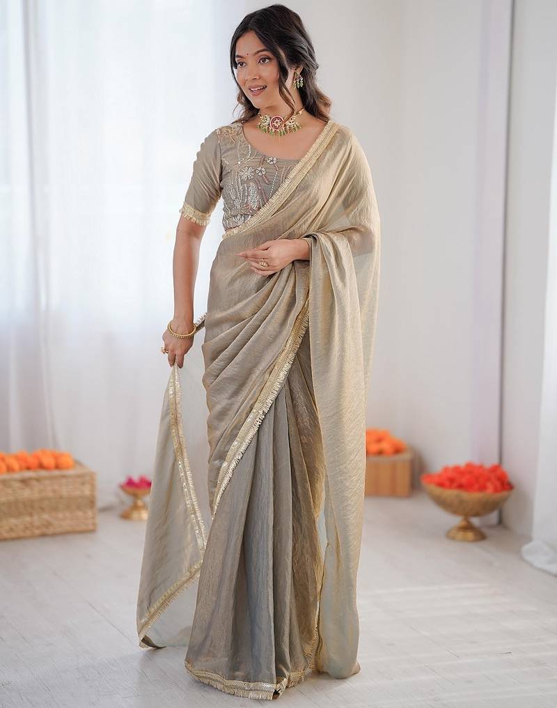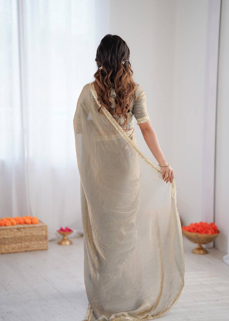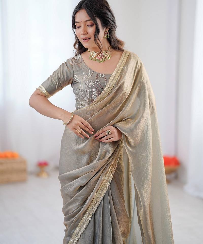 | Product Name | Silver Color 1 Minute Ready To Wear Fendy Silk Lace Border Saree With Blouse | |