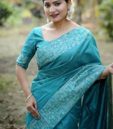 | Product Name | Sky Blue Color Handloom Raw Silk Weaving Pallu Saree | |