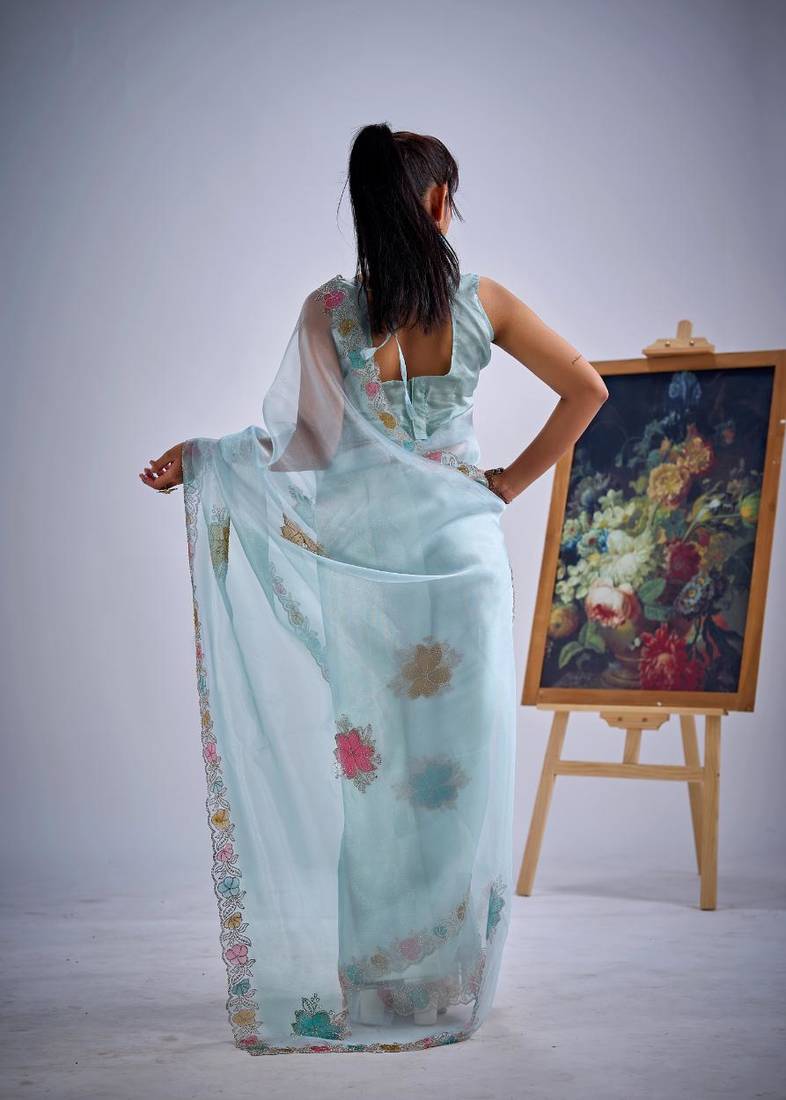 | • | Saree | : | Color- Sky Blue / Fabric- Organza |