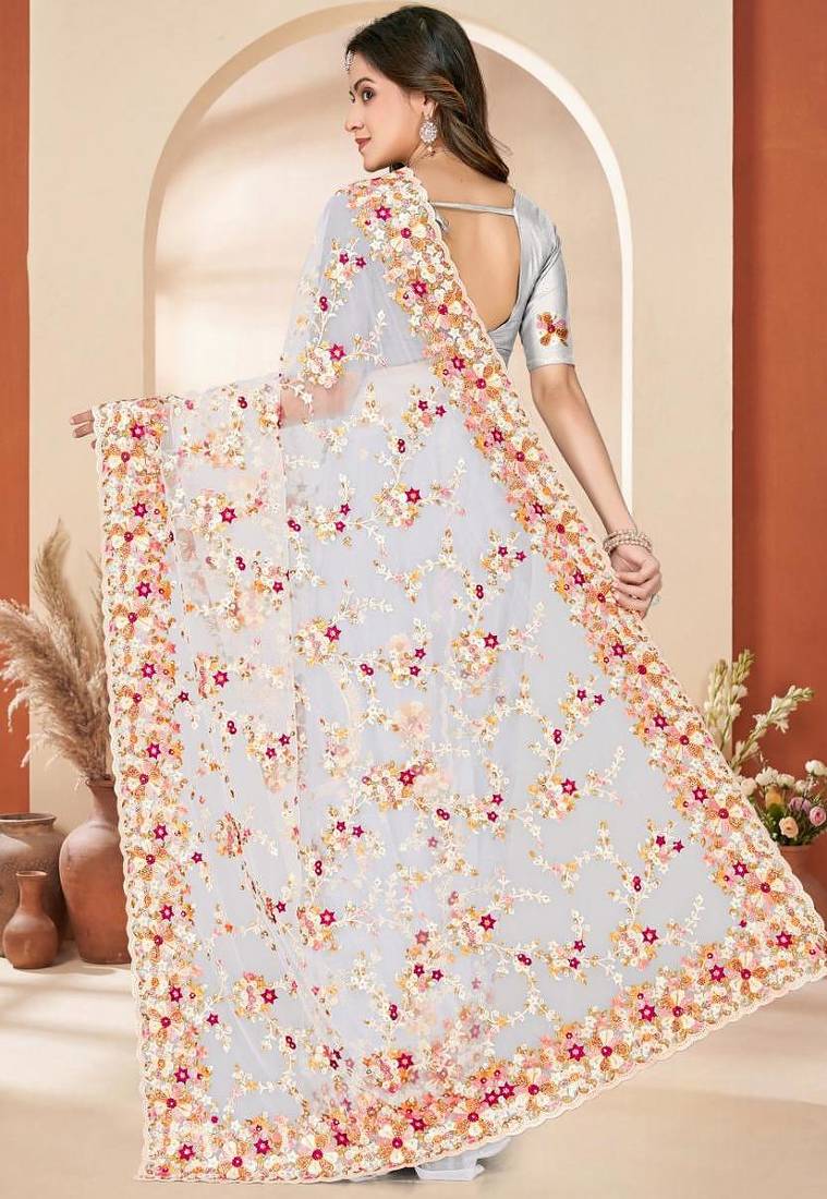 | Product Name | White Color Net Resham Embroidered & Zircon Work Saree | |