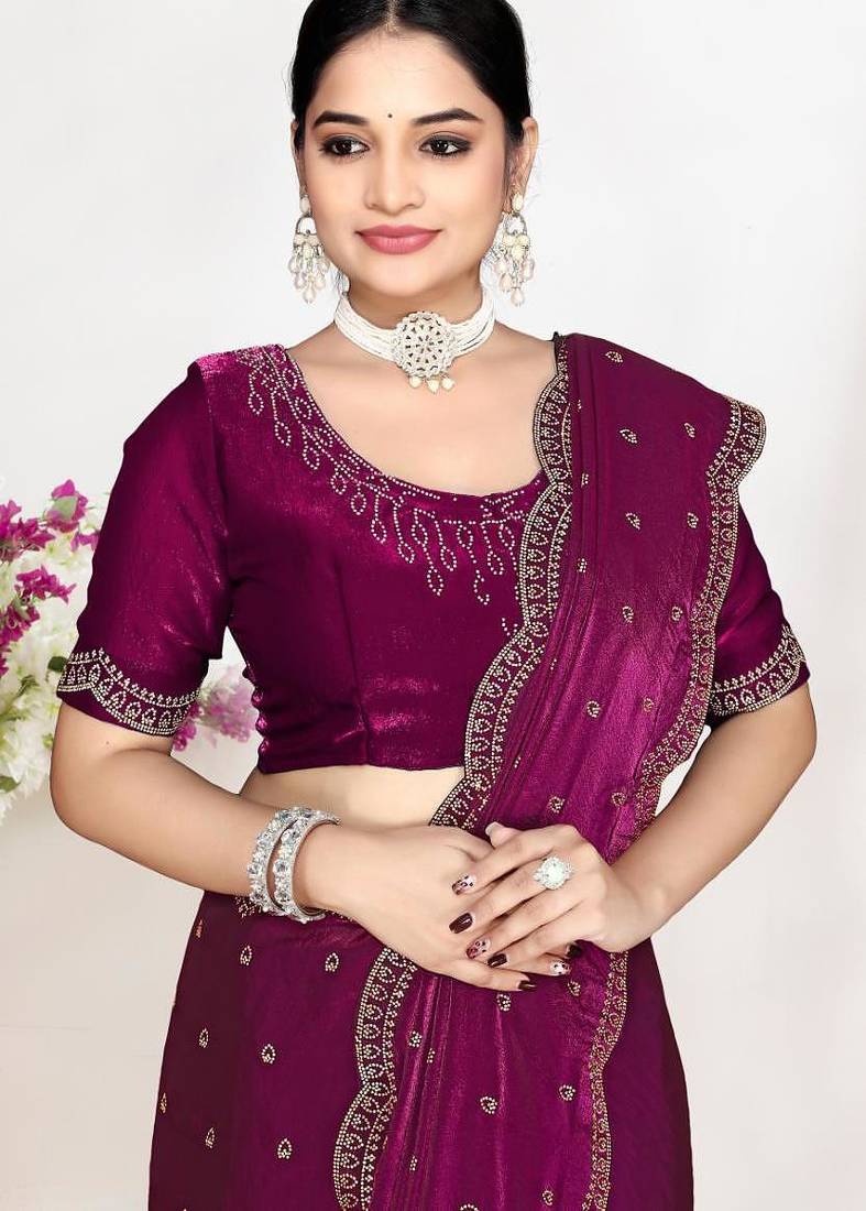 | Product Name | Wine Color Fendi Satin Silk Two Tone Zircon Work Saree | |