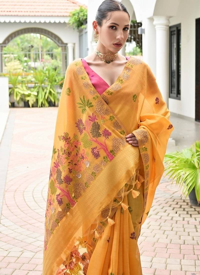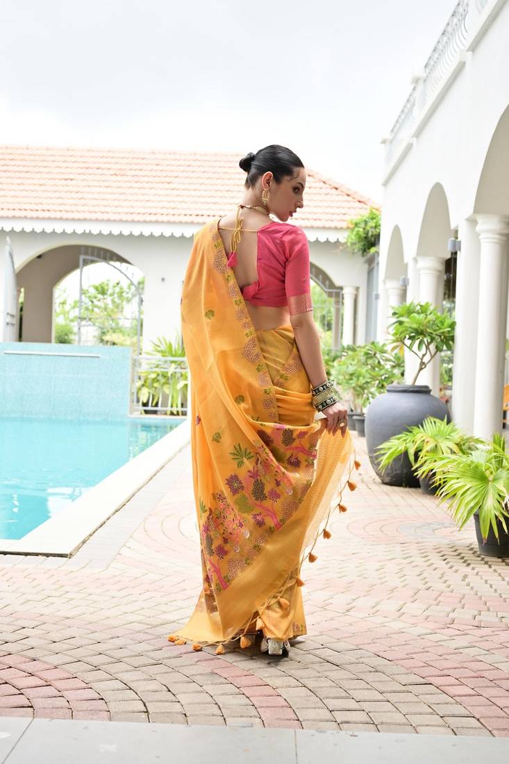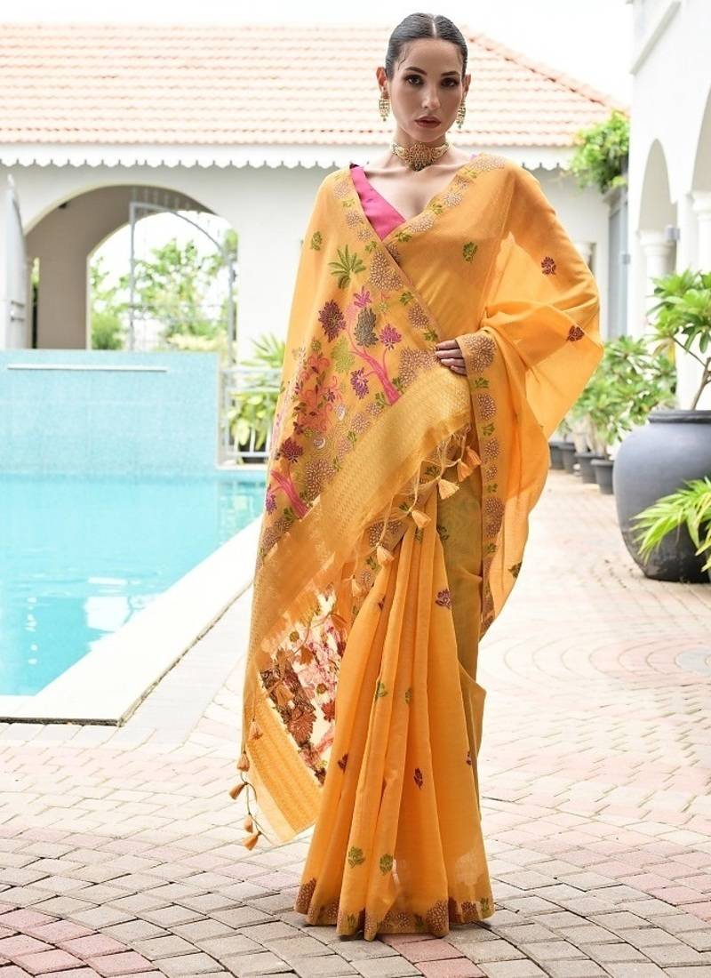 Product Name Yellow Color Chanderi Cotton Resham Weaving Party Wear Saree