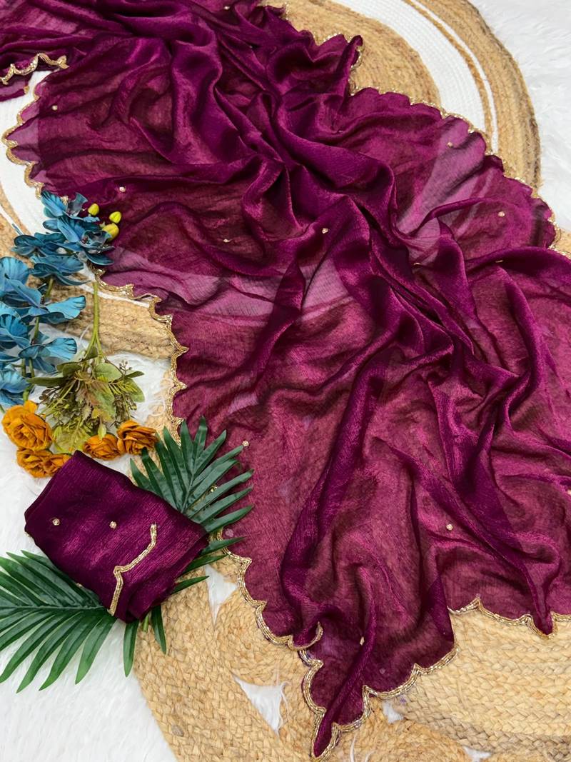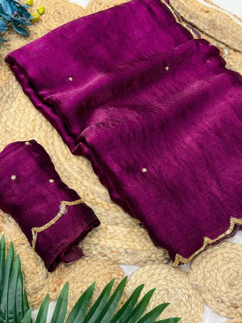 | Product Name | Plum Color Khatli Beads & Moti Handwork Chiffon Silk Saree | |