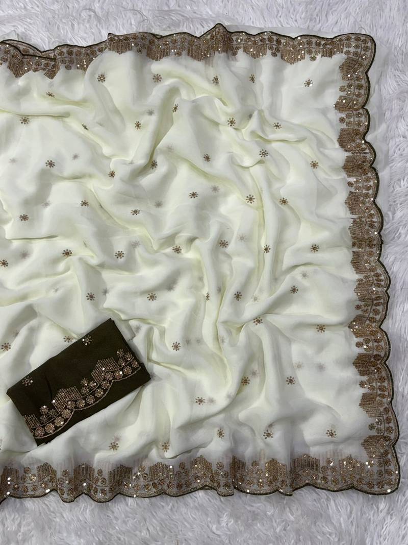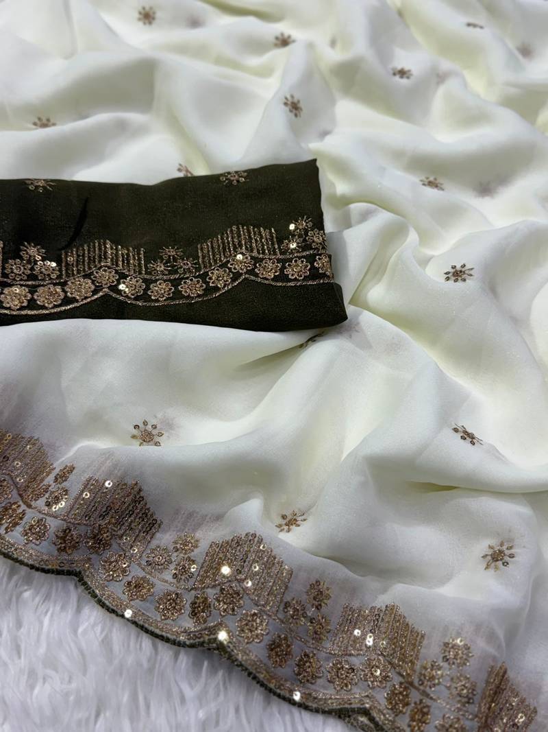 White color embroidery work georgette saree