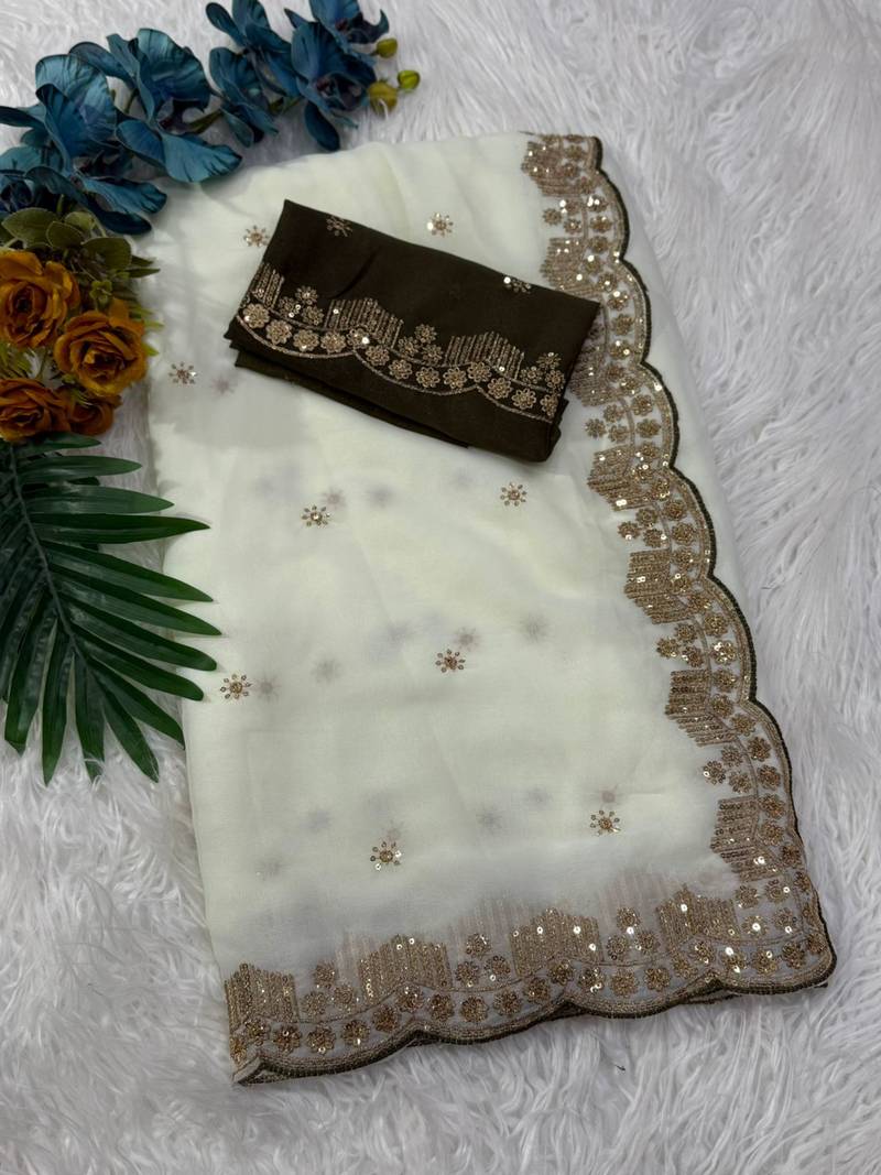 Beautiful Star Georgette Saree With Elegant Jari & Sequence Work, Giving A Stylish Shimmer And Graceful Party Look. Lightweight Fabric With A Flowy Drape And Premium Finish. |