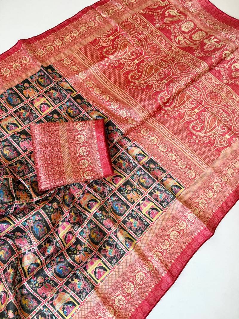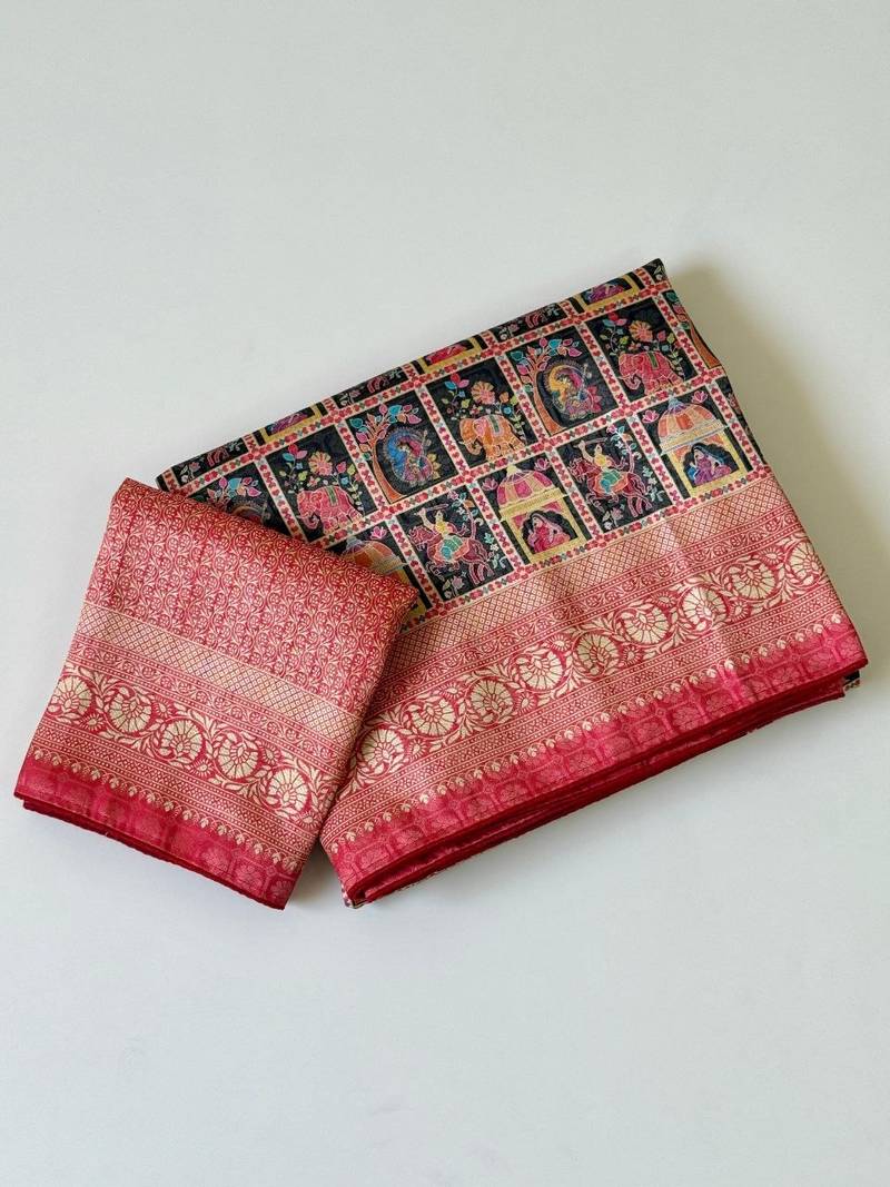 | Product Name | Black Color Digital Print Pasmina Weaving Silk Saree | |