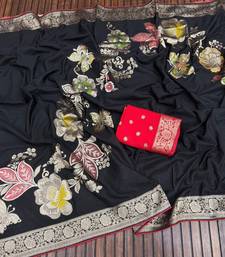 Black color meenakari big butterfly figure flower work viscos khaddi sarere