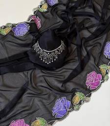 Black color zarkhan diamond flowers outing work georgette saree