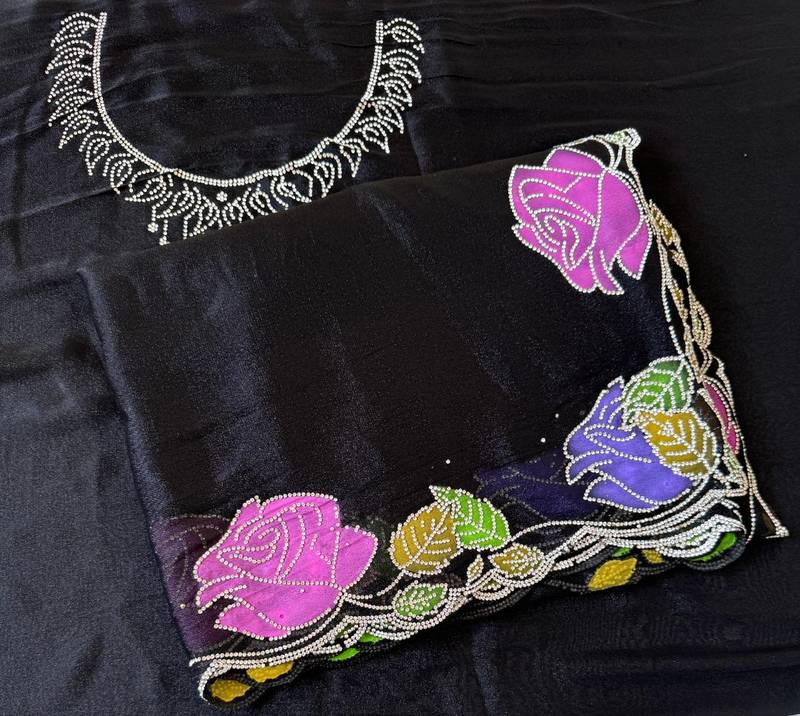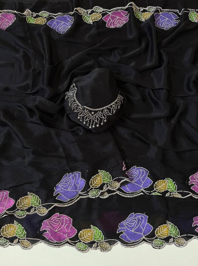 | Product Name | Black Color Zarkhan Diamond Flowers Outing Work Georgette Saree | |