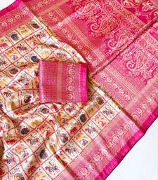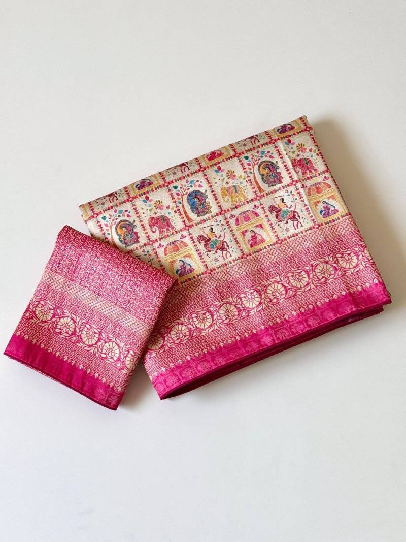 | Product Name | Cream Color Digital Print Pasmina Weaving Silk Saree | |
