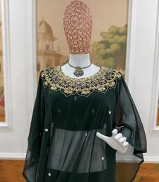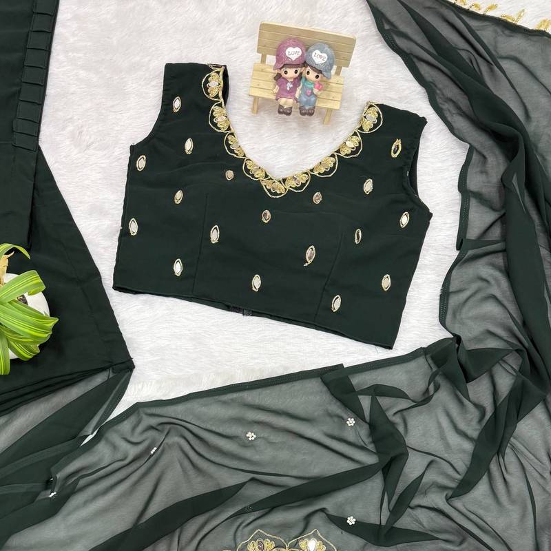 | Product Name | Dark Green Color Embroidery,Real Mirror & Pearls Work Faux Georgette Ready To Wear Saree | |