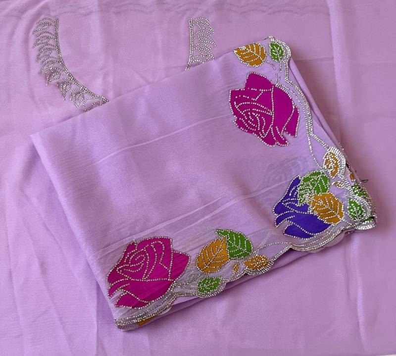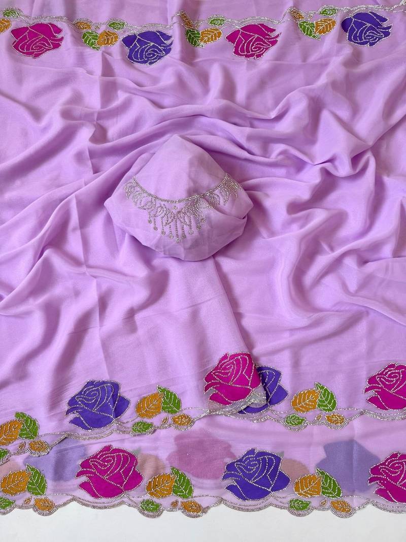 Lavender color zarkhan diamond flowers outing work georgette saree