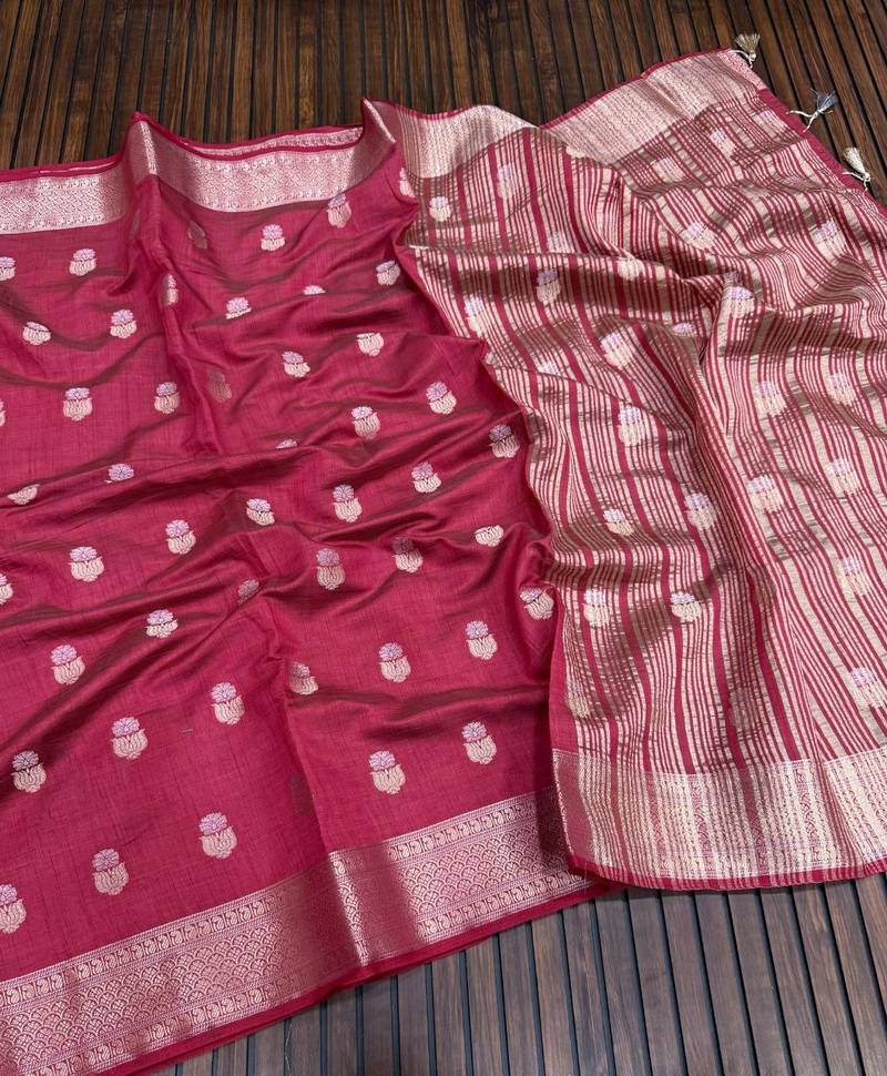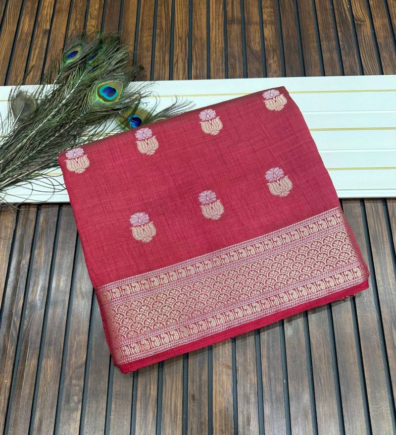 | Product Name | Maroon Color Jaqurad Weaving Lotus Butti Work Tuser Silk Saree | |