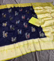 Navy blue color jari jaqurad weaving with hand chap daying georgette saree