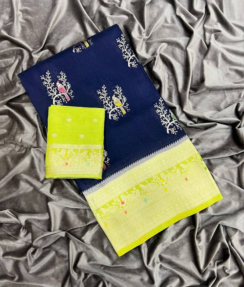 | Product Name | Navy Blue Color Jari Jaqurad Weaving With Hand Chap Daying Georgette Saree | |