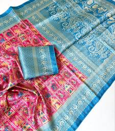 Pink color digital print pasmina weaving silk saree