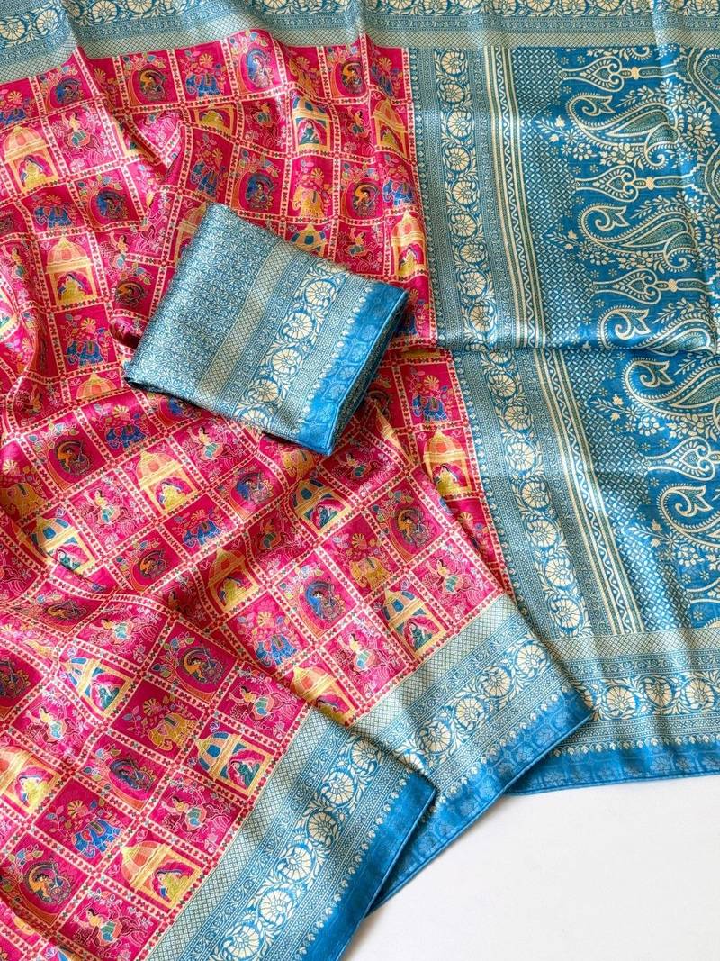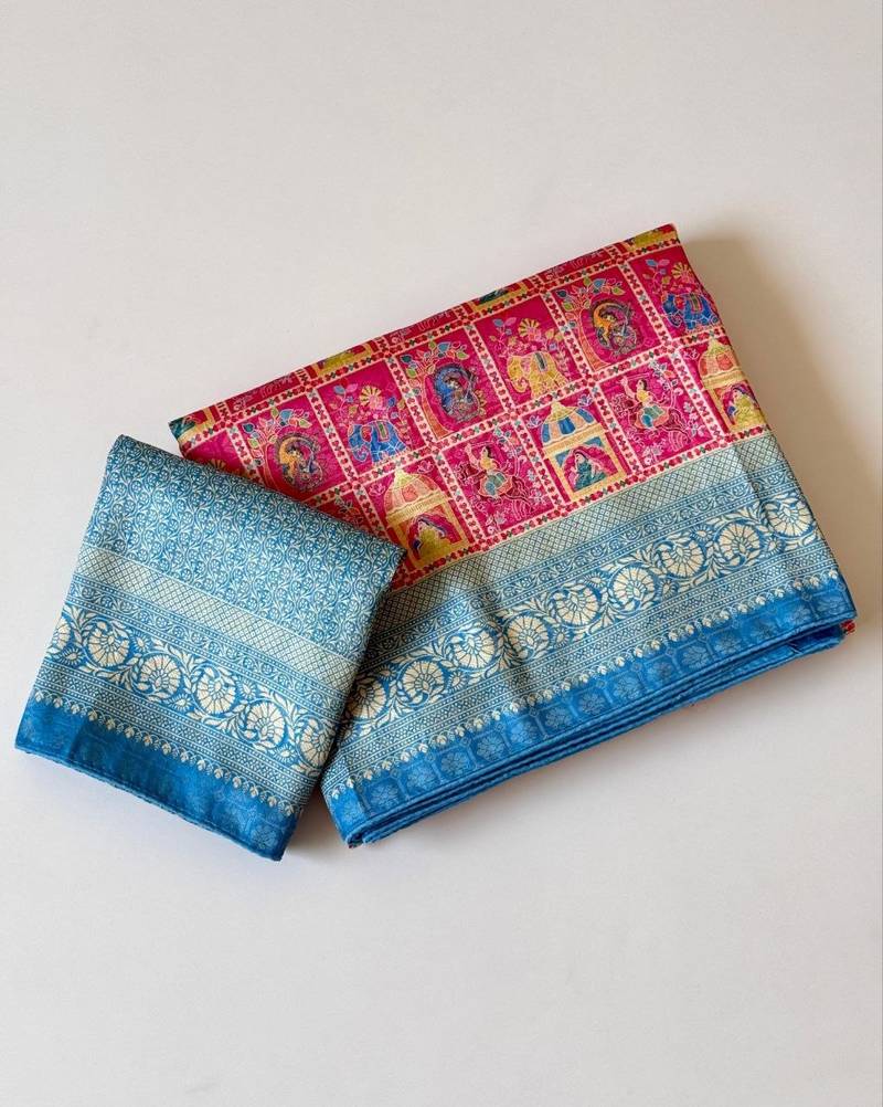 | Product Name | Pink Color Digital Print Pasmina Weaving Silk Saree | |