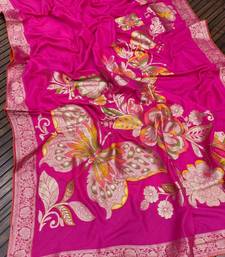 | Product Name | Pink Color Meenakari Big Butterfly Figure Flower Work Viscos Khaddi Sarere | |