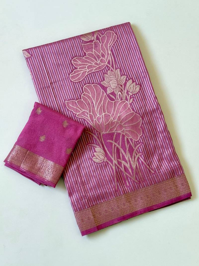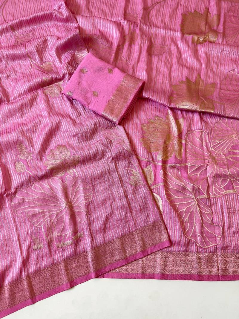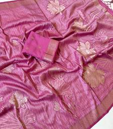 Pink color silver golden jari jaqurad weaving work georgette saree